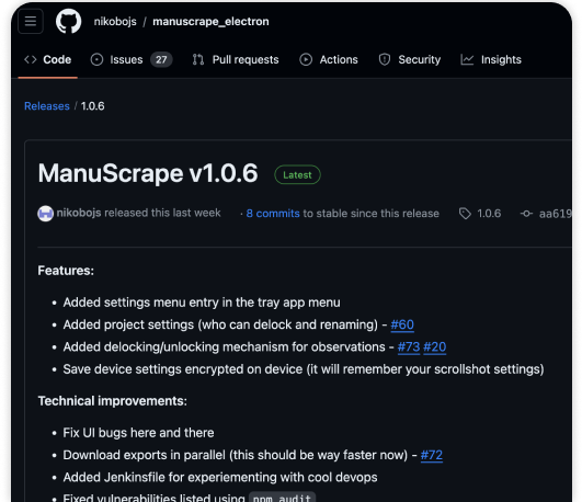 With ManuScrape your can collect, enrich and export research observations with ease, while staying organized and GDPR compliant. All free of charge.